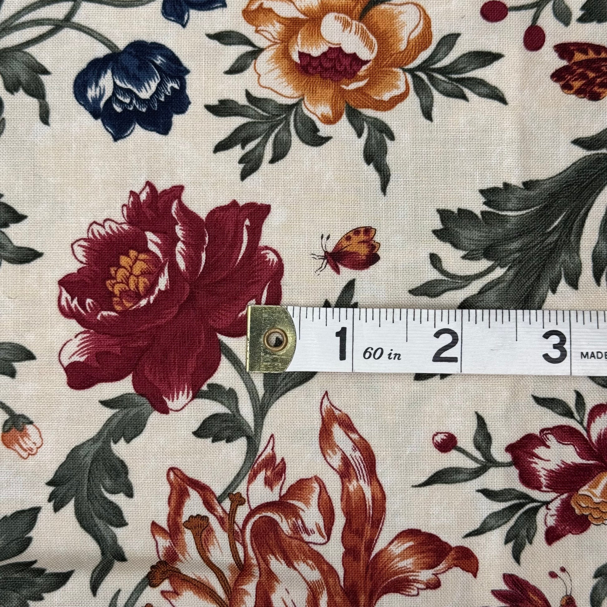 Multicolor on Cream Floral/Foliage Print Cotton: 1 yd