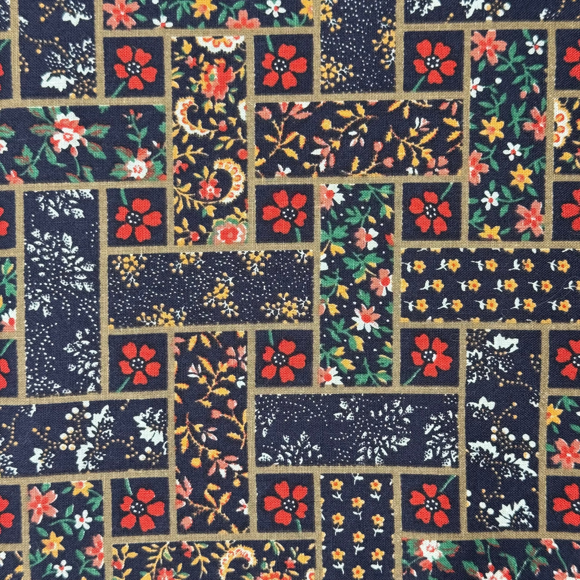 Multicolor Floral on Black Tiles Print Cotton: 2 yds