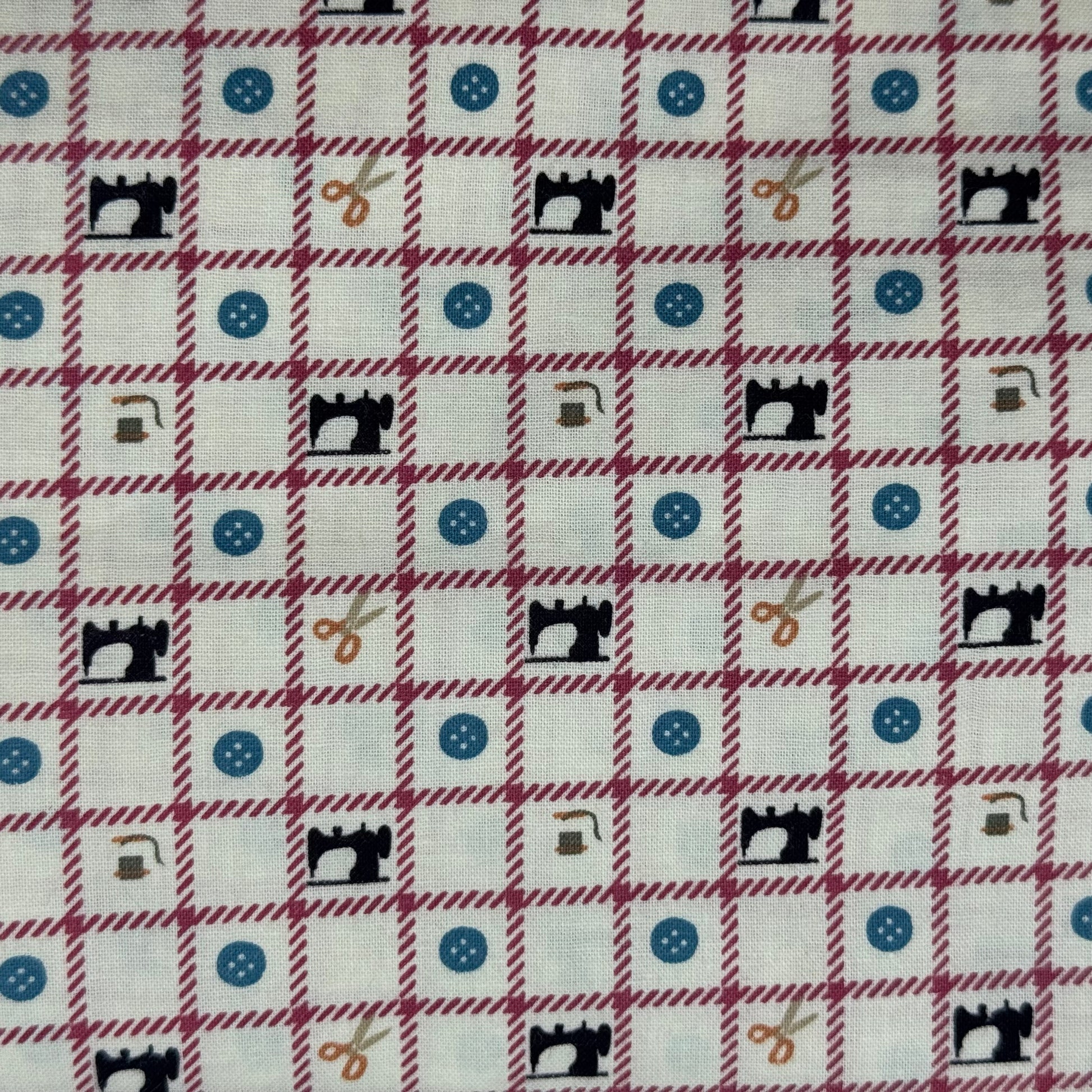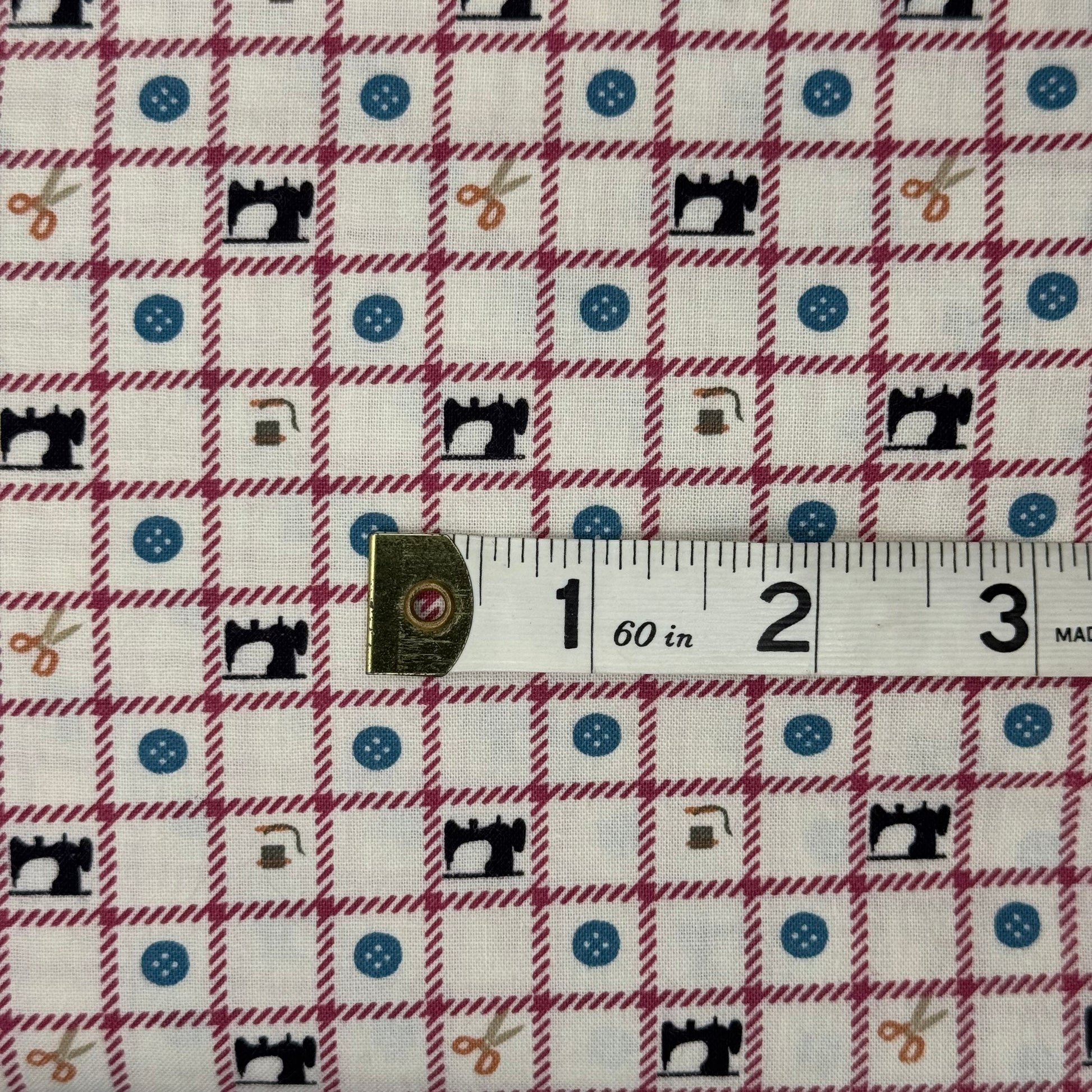 Multicolor on Ivory Sewing Theme Print Cotton: 3 yds