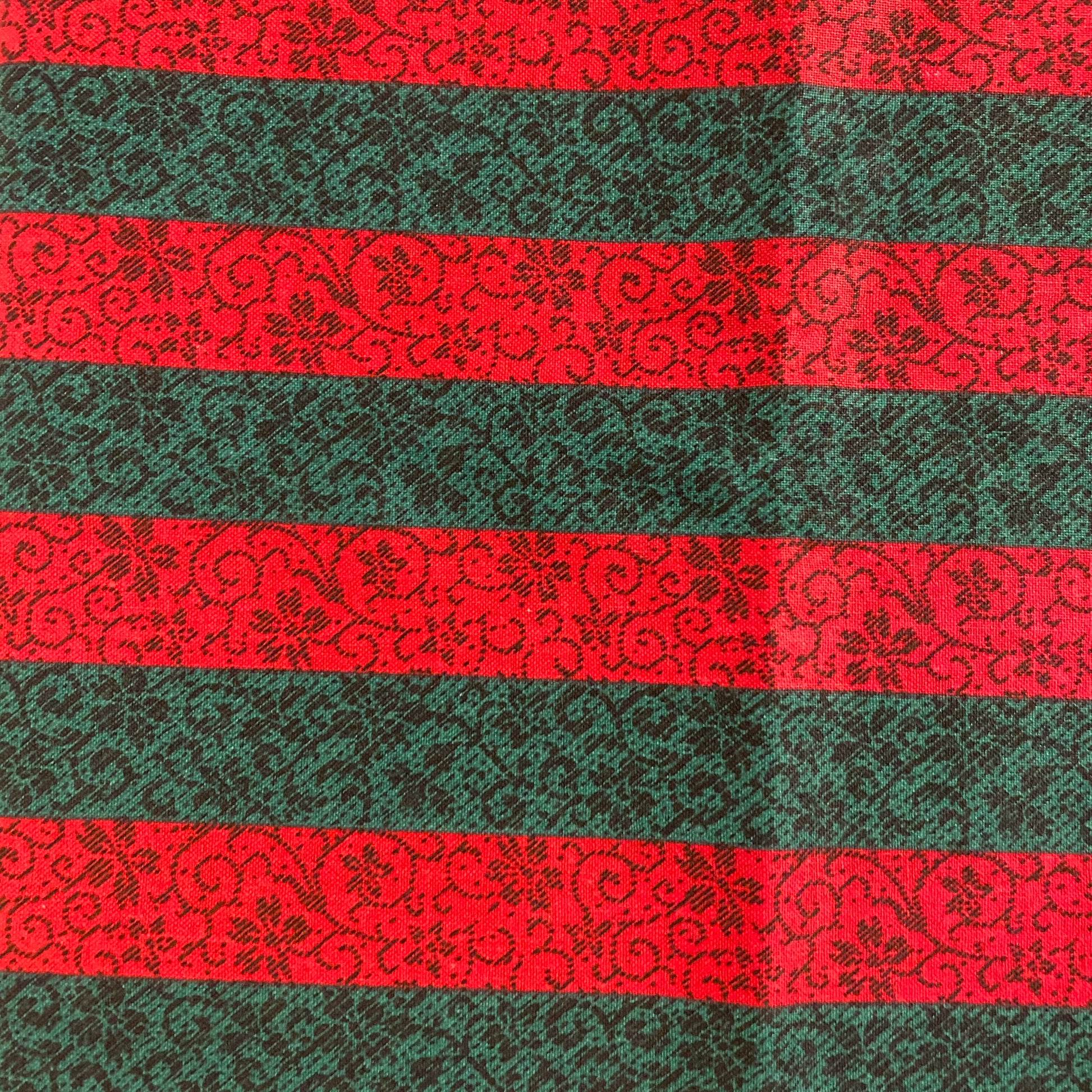 Red & Green Striped Floral Cotton Blend: 1 yd
